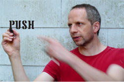 an, löst den honig aus, bringt das wort hervor, lässt die milch fließen, startet die verdickung, schafft die lockerung und malt das ereignis. push button durchbricht das hintergrundrauschen des ornaments und verlangt opfer. push button ist keine kunst. In allen Werkgruppen von Roger Frank kommt es immer zu einem Zusammentreffen von Bildschatz und Wortschatz. Sie zeigen in diesem Zusammenspiel, dass alle Kunst, die uns etwas bedeutet, wie eine Sprache organisiert ist. Beide – Kunst und Sprache – operieren mit den größeren und kleineren Einheiten eines vorhandenen und gekannten Materials und gelangen entweder zu einer Geschichte, die uns etwas sagt, in der plausiblen Anwendung dieses Materials, oder zum Neuen, zur überraschenden Wendung und erhellenden Verdichtung über die Umformung, Neuzusammenstellung und Konfrontation der bekannten Elemente. Unbekanntes lässt sich nicht erkennen. In allen Werkgruppen von Roger Frank werden, wie in der Welt, die Bilder ständig neu beschriftet und die Schriften ständig neu bebildert,so lange, bis vielleicht etwas Unbekanntes entsteht. Vielleicht so, dass es irgendwann doch zu erkennen ist. Vita geboren 1962 in Freiburg, lebt und arbeitet seit 1981 in Berlin, hat unter anderem Politologie und Geschichte studiert, als Ausfahrer, Beilageneinstecker, Buchgestalter, Dachdecker, Galerist, Hangwiesenmäher, Kopiergehilfe, Lagerist, Messebauer, Stallarchitekt und Zuschneider gearbeitet und diverse Ausstellungen realisiert. |